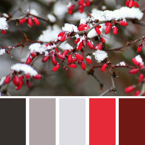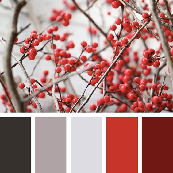 Светлый красный, бордовый и теплый серый – мягкое, радостное, но ненавязчивое сочетание.