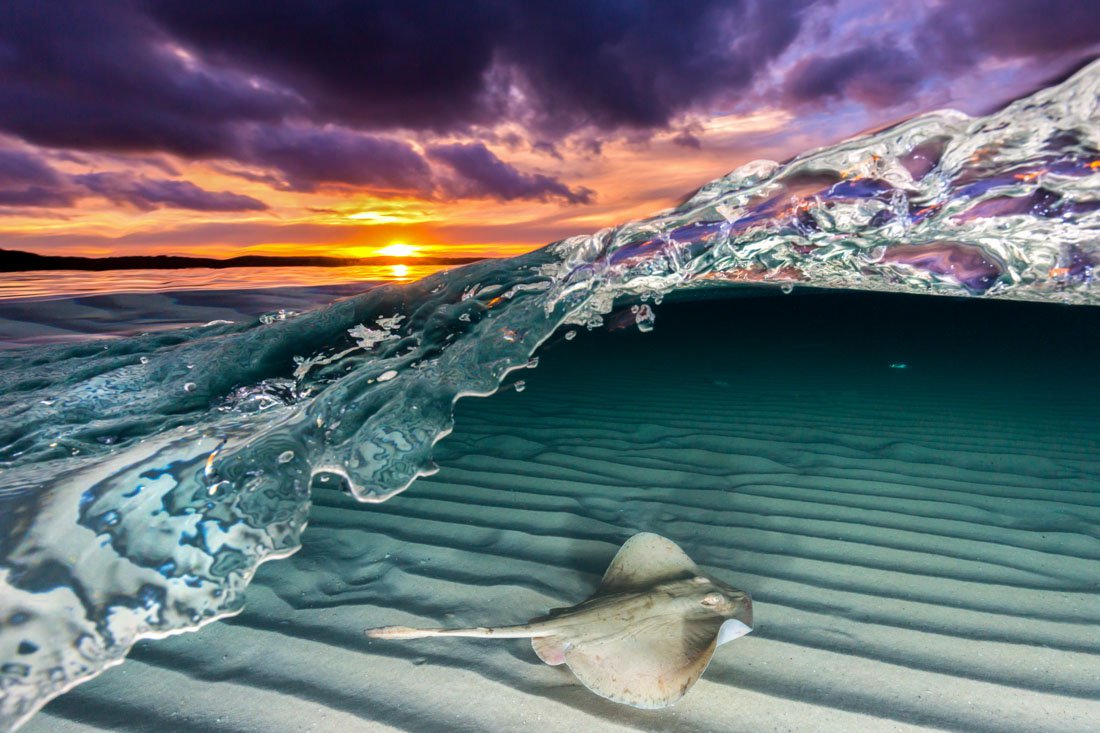Снимок сделан на заливе Джервис в Австралии. Волна приоткрыла дверь в подводный мир, где в этот момент мирно проплывал скат. Автор: Kiel Jordan Robins / jordan_robins.