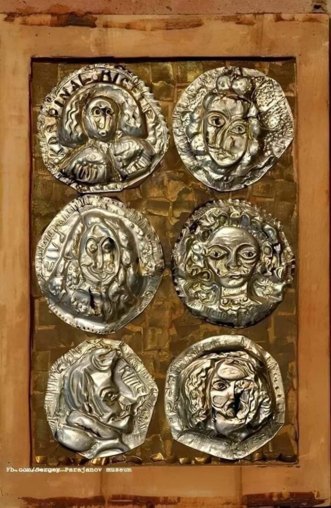 А когда у него на зоне отобрали карандаши и запретили рисовать, он выцарапывал профили великих людей на крышках от кефира, заливал смолой и делал такие «медали Параджанова».