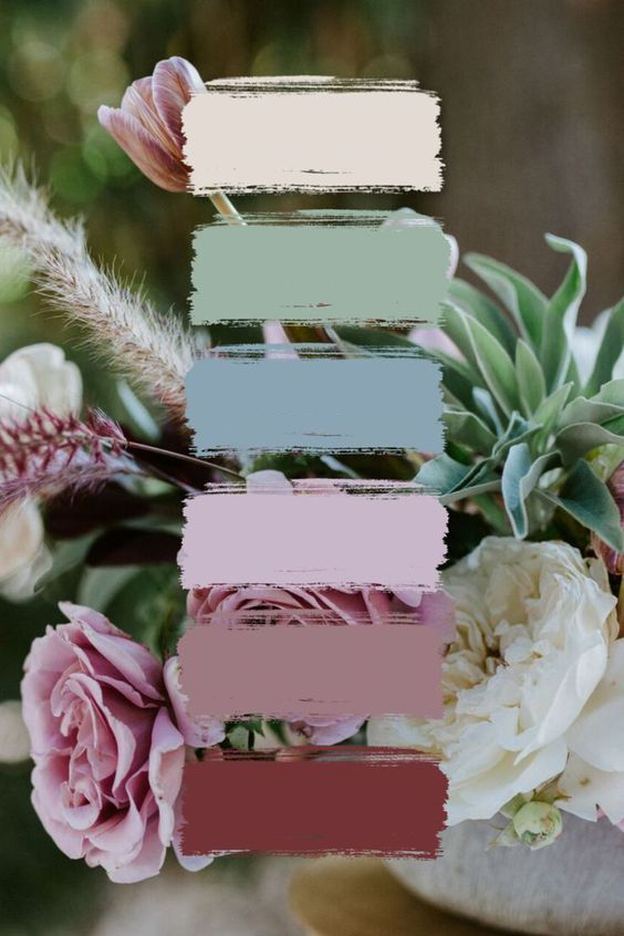 Дополнить композицию можно бежевым, серо-бежевым, белым, темным серо-зеленым, пеплом розы, золотым.