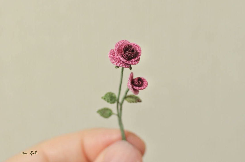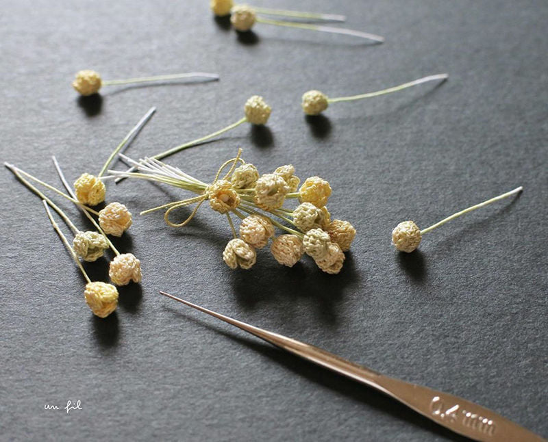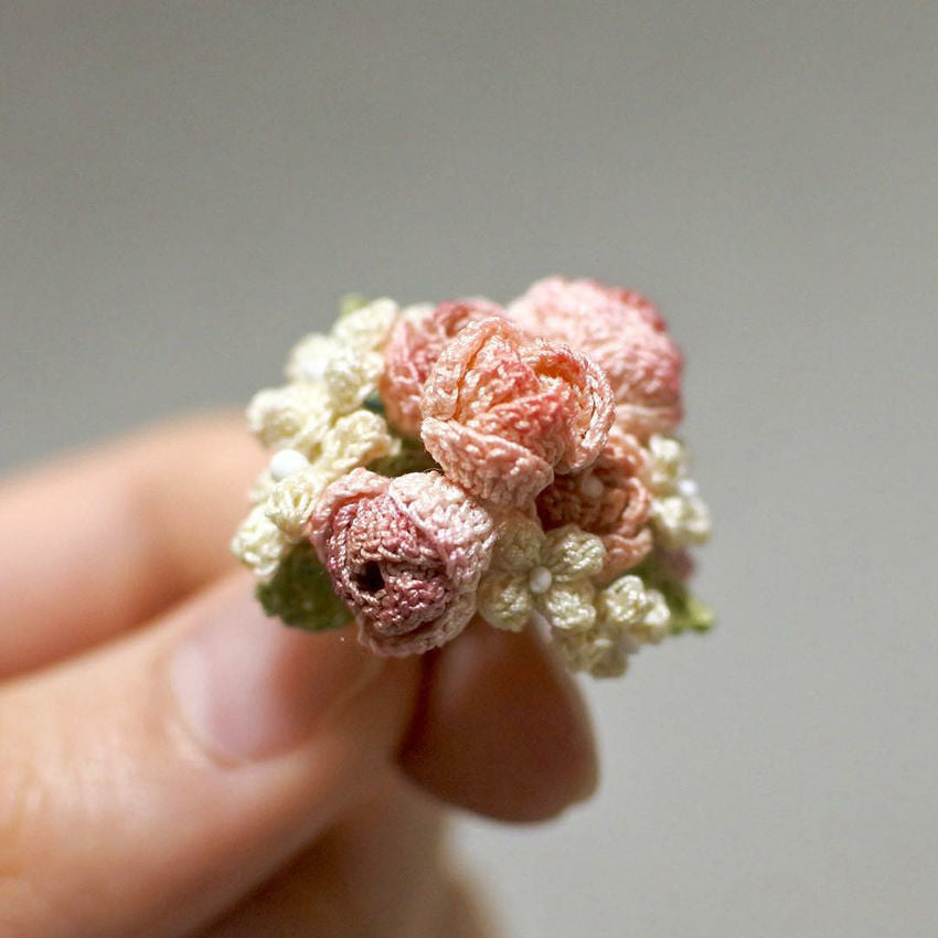 Японская мастерица нашла себя в необычном виде миниатюры: девушка вяжет крючком поразительно реалистичные соцветия и букеты, где каждый цветок легко уместится на подушечке пальца.