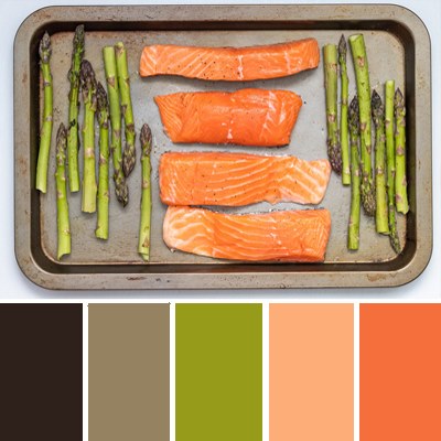 Оранжево-персиковый, хаки и оливковый – позитивное, осеннее сочетание.
