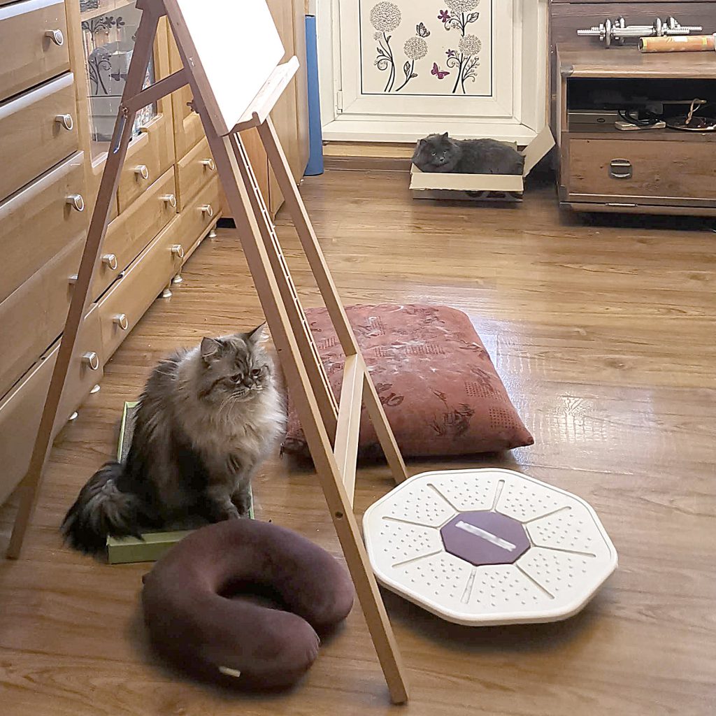 На балконе поселили большой велосипед и лыжи, у нас появилась сушка, которая приняла на себя почти всю бельевую нагрузку. Посреди «большой», 15 квадратных метров комнаты, она же кабинет, она же мастерская, она же спальня, она же зал, она же холл, она же столовая, она же гардеробная, водрузился огромный мольберт, который в отсутствие работы можно использовать и как сушку, и как ширму для видеозаписей.