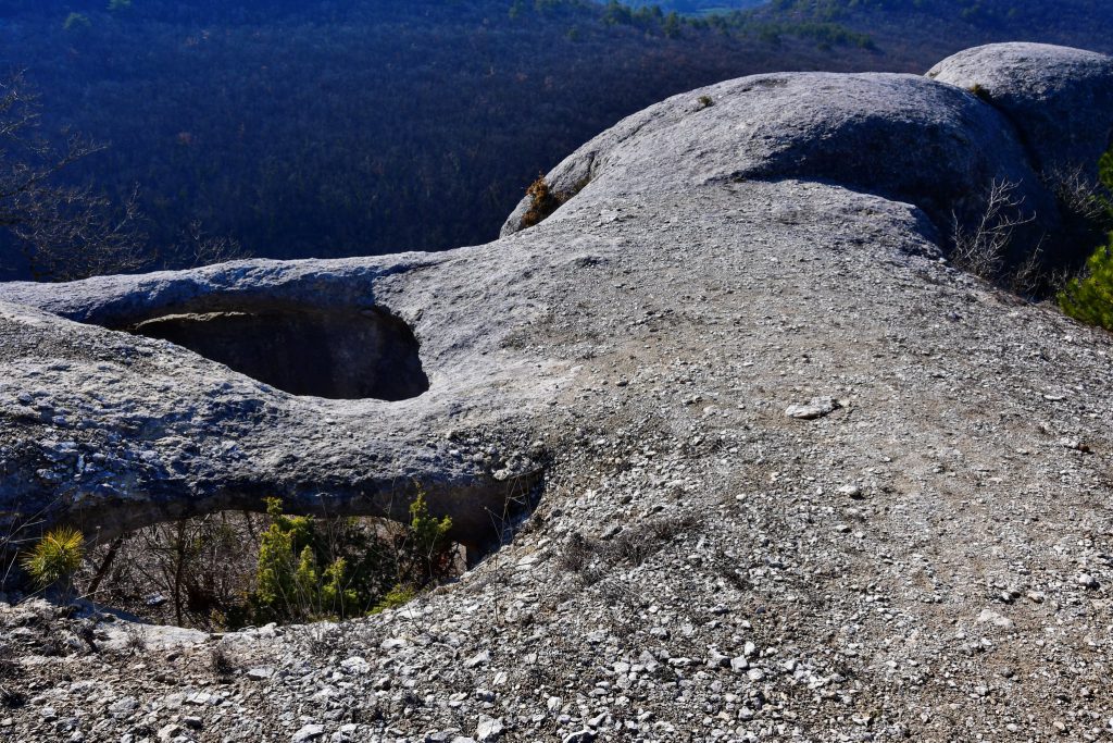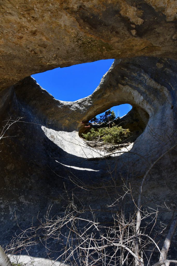 г.Казан-Кая – молоденькая сосна над одним из отверстий “дырявого” грота.