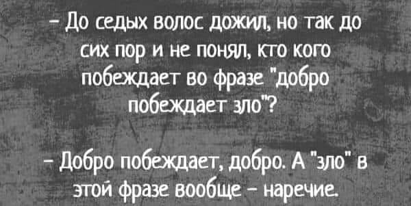 15 серьезно-юмористических жизненных принципов, которые странным образом работают⠀1.Аксиома Кана и Орбена:Если ничто другое не помогает, прочтите, наконец, инструкцию!⠀ 2. Закон Янга:Все великие открытия делаются по ошибке.⠀3. Закон Мескимена:Всегда не хватает времени, чтобы выполнить работу, как надо, но на то, чтобы ее переделать, время находится.⠀ 4. Восьмое правило Фингейла:Работа в команде очень важна. Она позволяет свалить […]
