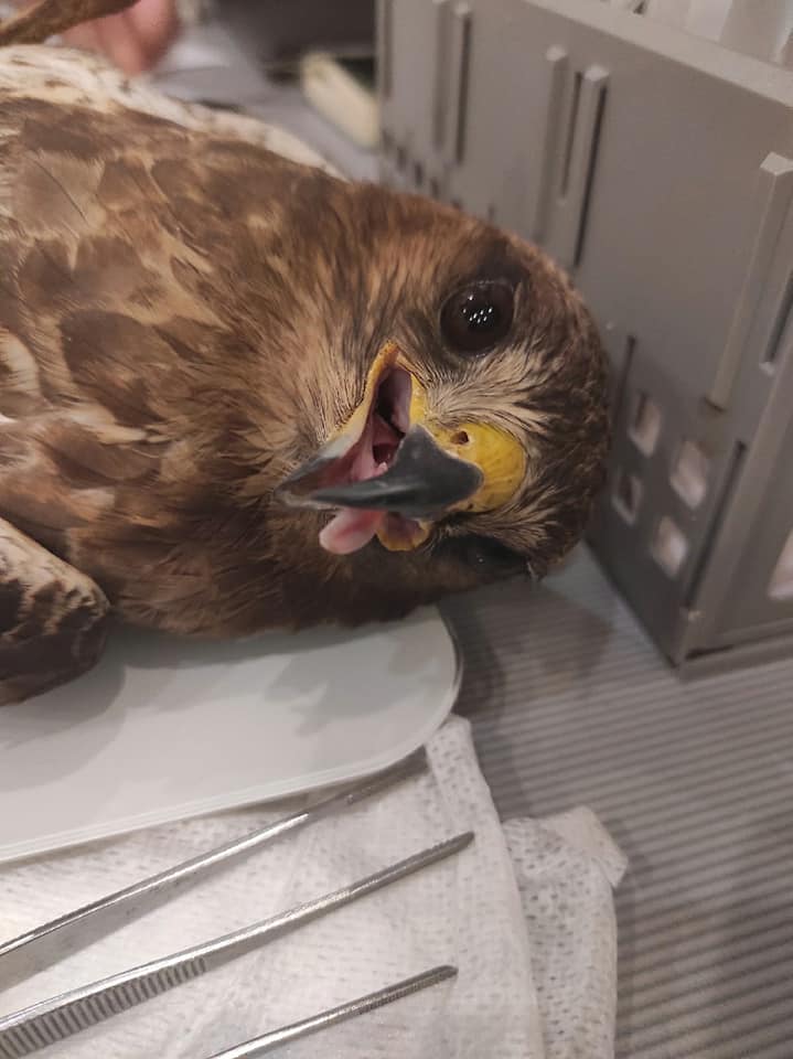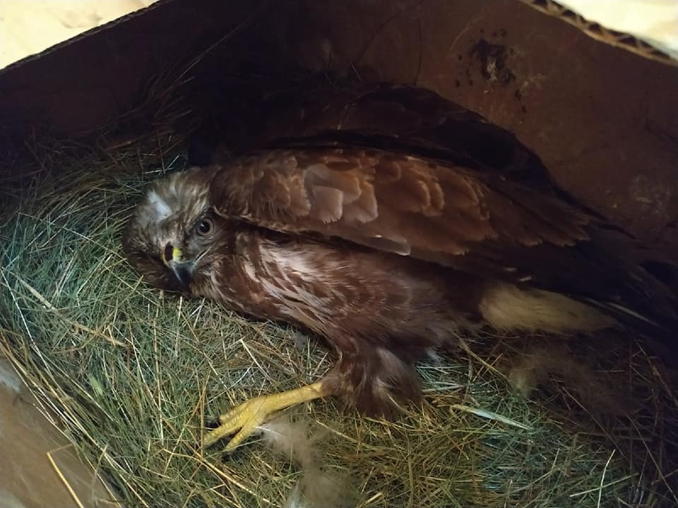 Канюк обыкновенный. Самец. Скальпированная рана, истощение.