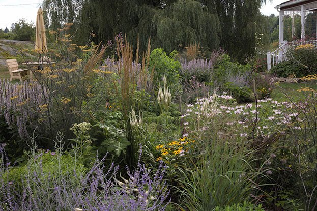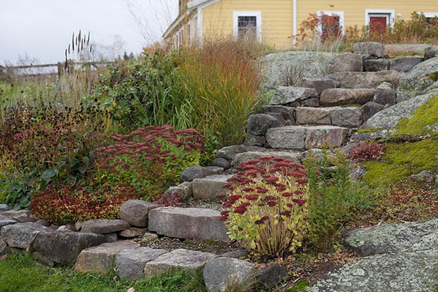 Late season in the garden at Four Foot Farm in Bar Habor, Maine. Designed by Songscape Gardens also based in Bar Harbor.